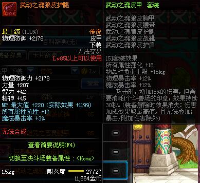 | 85 | 武动之魂狼皮护腿 | *决斗场-爱莎&鹰吉&风铃 出售 *设计图(爱莎&鹰吉&风铃 出售) |