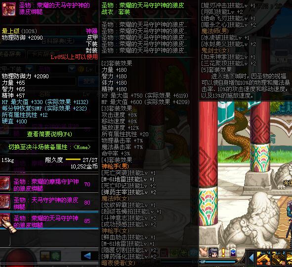 | 85 | 圣物 :荣耀的天马守护神的狼皮绑腿 | *Lv85~91普通地下城怪物掉落 | ||