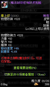 | 35 | 圣物 :生命女神的狼皮长靴 | *Lv34~41普通地下城怪物掉落 |
