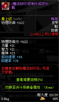 | 80 | 圣物 :天马守护神的狼皮战靴 | *Lv80~86普通地下城怪物掉落 | ||