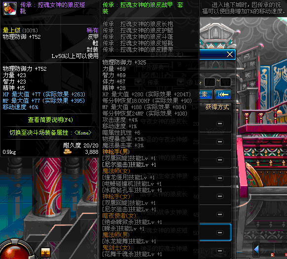 | 50 | 圣物 :荣耀的战争女神的狼皮长靴 | *Lv50~56普通地下城怪物掉落 |