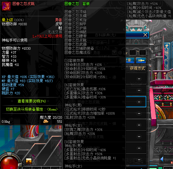 | 30 | 圣物 :荣耀的守夜女神的蟒皮长靴 | *Lv29~36普通地下城怪物掉落 |