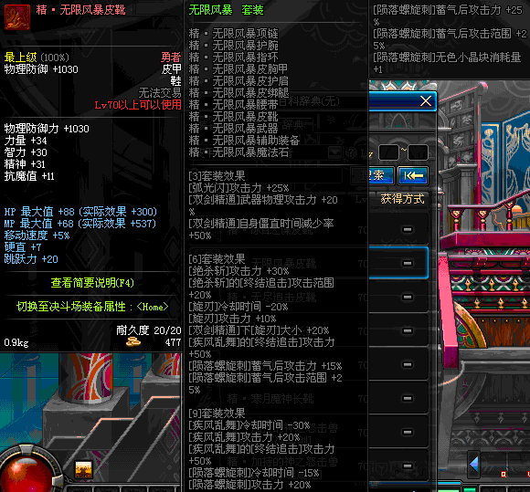 | 85 | 黄泉之风战靴 | *Lv84~91深渊地下城怪物掉落 | 杀意决 套装 | |