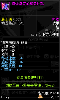 | 30 | 蜘蛛皇室的华美长靴 | *蜘蛛王子尼古拉斯 掉落(蜘蛛王国) *在NPC克伦特的物品店购买(阿拉德陨石×64) |