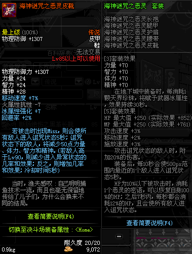 | 85 | 海神谜咒之恶灵皮靴 | *昨日之巴斯顿 掉落 (在远古地下城里出没。) *从NPC鲁特的物品店出售的[海神谜咒防具礼盒]中获得 *船长鲁特 出售 (深海诅咒 : 解咒法×60) |