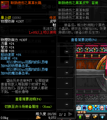 | 85 | 断肠绝伤之黑革长靴 | *昨日之巴斯顿 掉落 (在远古地下城里出没。) *从NPC鲁特的物品店出售的[断肠绝伤防具礼盒]中获得 *任务奖励(地下城:比尔马克帝国试验场 NPC娜塔莉娅·休勒) |