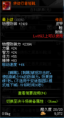 | 85 | 使徒行者短靴 | *粉碎之阿托尔 掉落(能量阻截战 7图) *设计图(安徒恩普通地下城 登场的NPC加百利 出售) |
