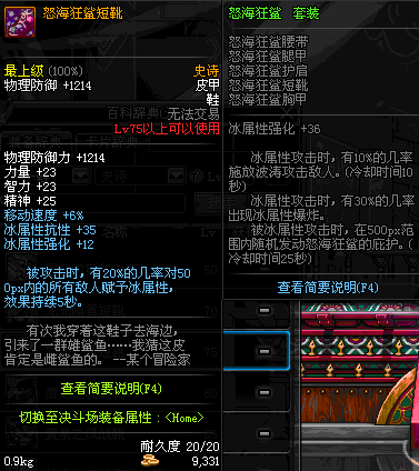 | 75 | 怒海狂鲨短靴 | *Lv74~81深渊地下城怪物掉落 | 怒海狂鲨 套装 | |