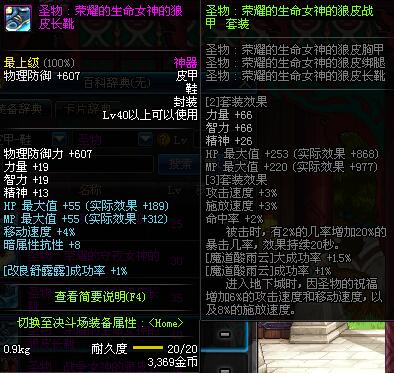 | 40 | 圣物 :荣耀的生命女神的狼皮长靴 | *Lv39~46普通地下城怪物掉落 |