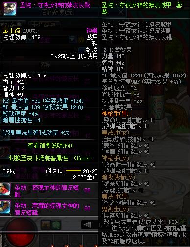 | 45 | 圣物 :战争女神的狼皮长靴 | *Lv45~51普通地下城怪物掉落 |