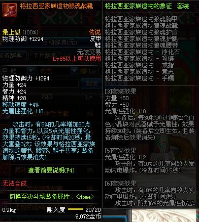 | 85 | 圣物 :荣耀的天马守护神的狼皮战靴 | *Lv85~91普通地下城怪物掉落 | ||