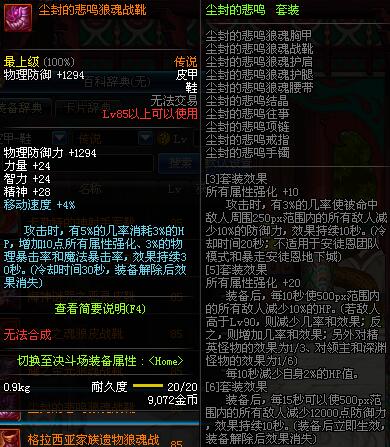 | 85 | 瘟疫之源狼魂战靴 | *昨日之巴斯顿 掉落 (在远古地下城里出没。) *从NPC鲁特的物品店出售的[瘟疫之源防具礼盒]中获得 |