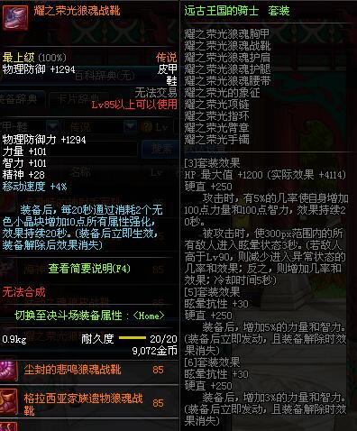 | 85 | 耀之荣光狼魂战靴 | *昨日之巴斯顿 掉落 (在远古地下城里出没。) *从NPC鲁特的物品店出售的[耀之荣光防具礼盒]中获得 |