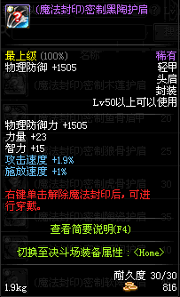 | 45 | 圣物 :战争女神的黑陶黑陶护肩 | *Lv45~51普通地下城怪物掉落 |