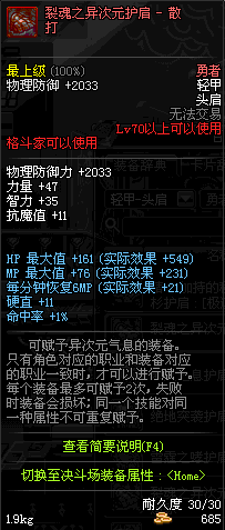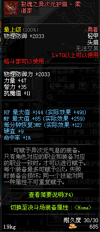 | 70 | 裂魂之异次元护肩 - 剑魂 | |||