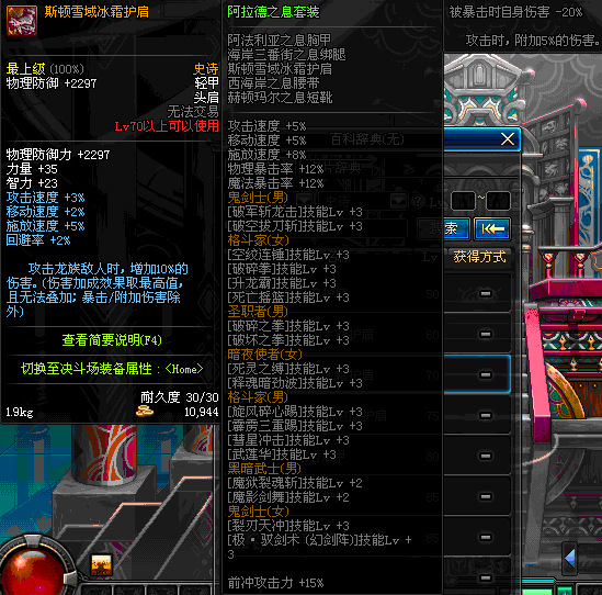 | 辅助装备: | 全职业 鬼剑士 女鬼剑 女格斗 男格斗 神枪手 女枪手 魔法师 男法师 圣职者 暗夜使者 守护者 |