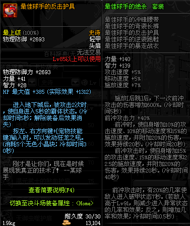 | 85 | 最佳球手的反击护具 | *Lv84~91深渊地下城怪物掉落 | 最佳球手的绝杀 套装 | |