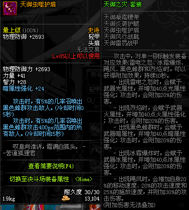 | 85 | 天御虫噬护肩 | *Lv84~91深渊地下城怪物掉落 | 天御之灾 套装 | |