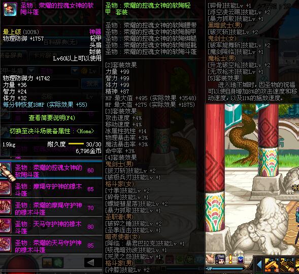 | 70 | 圣物 :荣耀的摩羯守护神的橡木斗篷 | *Lv70~76普通地下城怪物掉落 |