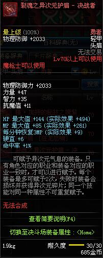 | 70 | 裂魂之异次元护肩 - 决战者 | |||