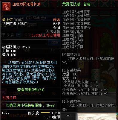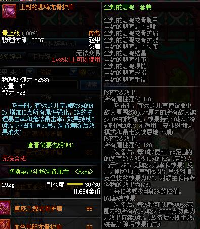 | 85 | 血色残阳龙骨护肩 | *昨日之巴斯顿 掉落 (在远古地下城里出没。) *从NPC鲁特的物品店出售的[血色残阳防具礼盒]中获得 |