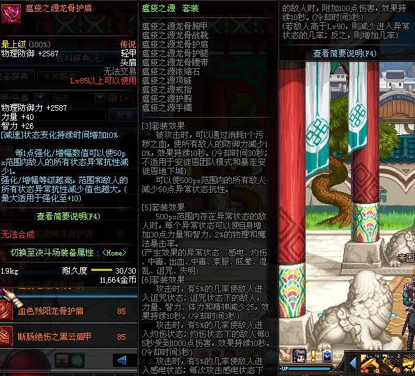 | 85 | 瘟疫之源龙骨护肩 | *昨日之巴斯顿 掉落 (在远古地下城里出没。) *从NPC鲁特的物品店出售的[瘟疫之源防具礼盒]中获得 |