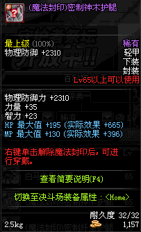 | 65 | 圣物 :摩羯守护神的橡木绑腿 | *Lv65~71普通地下城怪物掉落 |