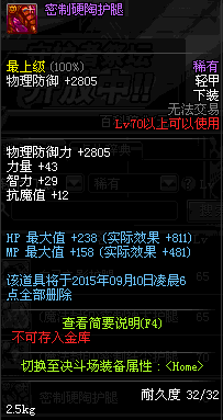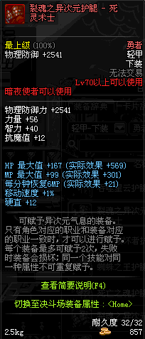 | 70 | 裂魂之异次元护腿 - 剑魂 | |||