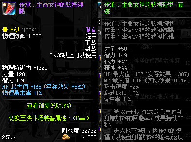 | 35 | 圣物 :生命女神的软陶绑腿 | *Lv34~41普通地下城怪物掉落 |