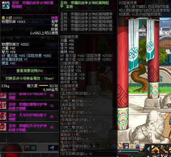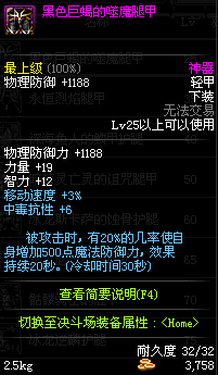 | 45 | 圣物 :战争女神的黑陶黑陶绑腿 | *Lv45~51普通地下城怪物掉落 |