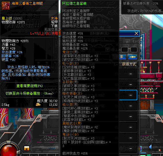 | 辅助装备: | 全职业 鬼剑士 女鬼剑 女格斗 男格斗 神枪手 女枪手 魔法师 男法师 圣职者 暗夜使者 守护者 |