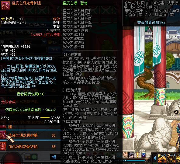 | 85 | 血色残阳龙骨护腿 | *昨日之巴斯顿 掉落 (在远古地下城里出没。) *从NPC鲁特的物品店出售的[血色残阳防具礼盒]中获得 |