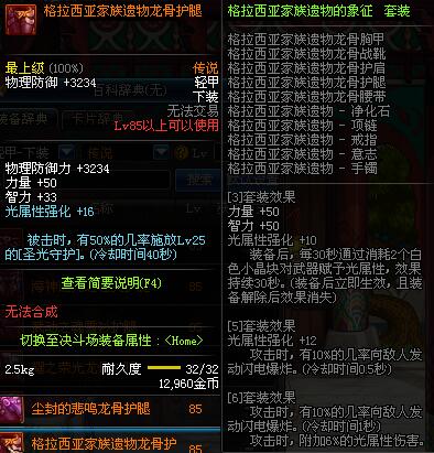 | 85 | 圣物 :荣耀的天马守护神的橡木绑腿 | *Lv85~91普通地下城怪物掉落 | ||