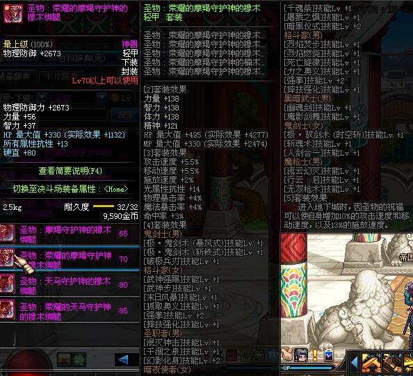 | 70 | 圣物 :荣耀的摩羯守护神的橡木绑腿 | *Lv70~76普通地下城怪物掉落 |