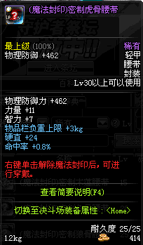 | 30 | (魔法封印)密制虎骨腰带 | *Lv29~36普通地下城怪物掉落 *完成[唤醒亡者的力量]任务 *使用Lv29~36怪物掉落的设计图进行制作 |
