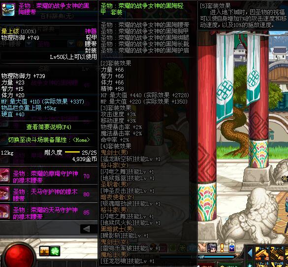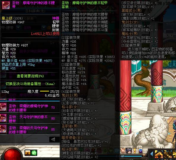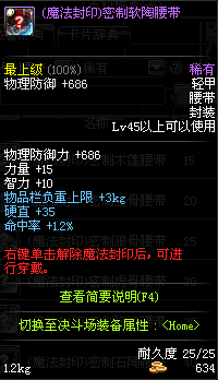 | 45 | 圣物 :战争女神的黑陶黑陶腰带 | *Lv45~51普通地下城怪物掉落 |