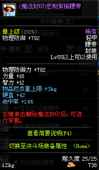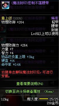 | 15 | (魔法封印)密制木莲腰带 | *Lv13~21普通地下城怪物掉落 *完成[[魔法封印防具]天才武道家的试炼(2/3)]任务 *使用Lv13~21怪物掉落的设计图进行制作 |
