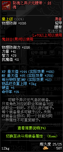 | 70 | 裂魂之异次元腰带 - 剑魂 | |||