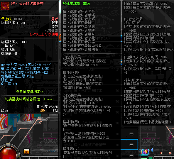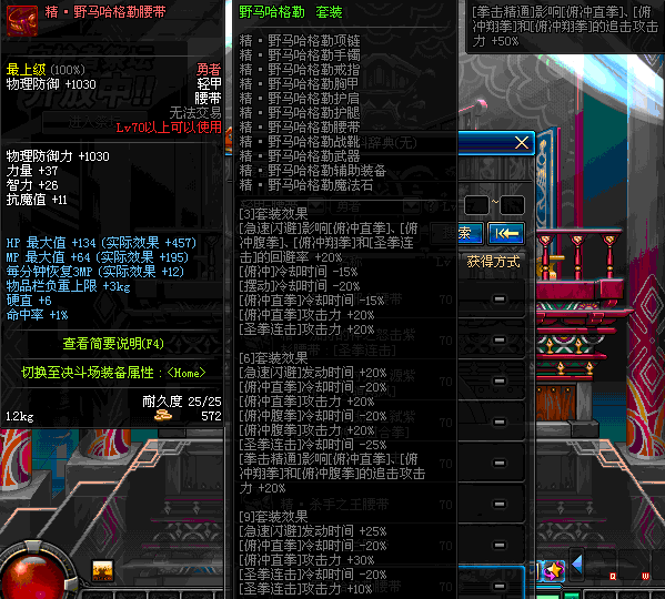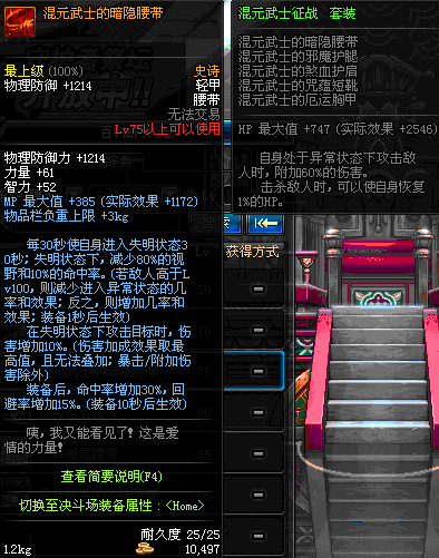 | 75 | 混元武士的暗隐腰带 | *Lv74~81深渊地下城怪物掉落 | 混元武士征战 套装 | |