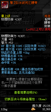 | 85 | 圣物 :荣耀的天马守护神的橡木腰带 | *Lv85~91普通地下城怪物掉落 | ||