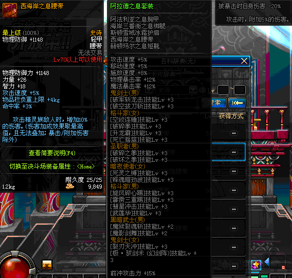 | 70 | 西海岸之息腰带 | *Lv69~76深渊地下城怪物掉落 | 阿拉德之息套装 | |