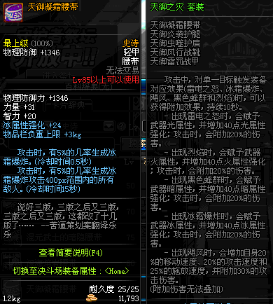 | 85 | 天御凝霜腰带 | *Lv84~91深渊地下城怪物掉落 | 天御之灾 套装 | |