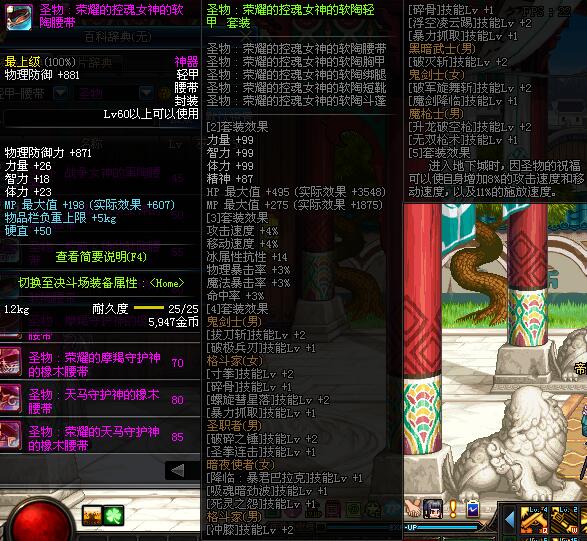 | 60 | 圣物 :荣耀的控魂女神的软陶腰带 | *Lv58~66普通地下城怪物掉落 |