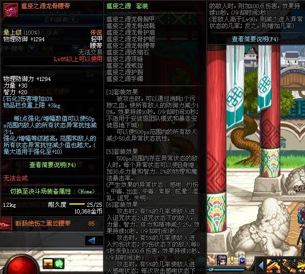 | 85 | 瘟疫之源龙骨腰带 | *昨日之巴斯顿 掉落 (在远古地下城里出没。) *从NPC鲁特的物品店出售的[瘟疫之源防具礼盒]中获得 |