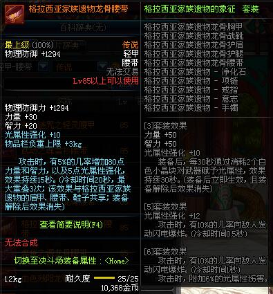 | 85 | 格拉西亚家族遗物龙骨腰带 | *昨日之巴斯顿 掉落 (在远古地下城里出没。) *从NPC鲁特的物品店出售的[格拉西亚家族遗物 - 防具礼盒]中获得 |