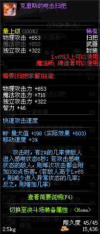 | 45 | 圣物 : 冥火精灵之强风扫把 | *Lv45~51普通地下城怪物掉落 |