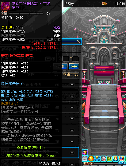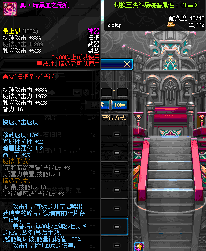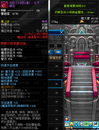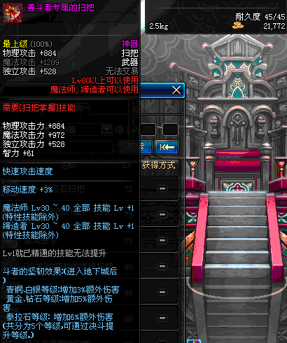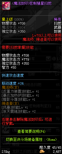 | 65 | 暗黑魔女的扫把 | *Lv65~71普通地下城怪物掉落 *在加百利的神秘商店购买 |