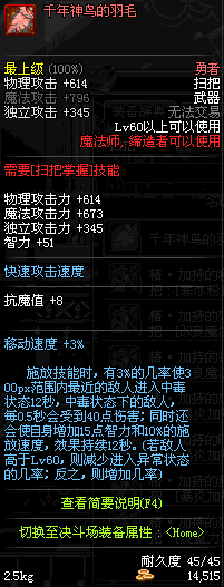 | 辅助装备: | 全职业 鬼剑士 女鬼剑 女格斗 男格斗 神枪手 女枪手 魔法师 男法师 圣职者 暗夜使者 守护者 |