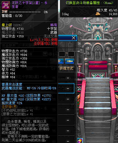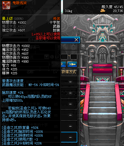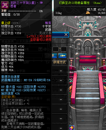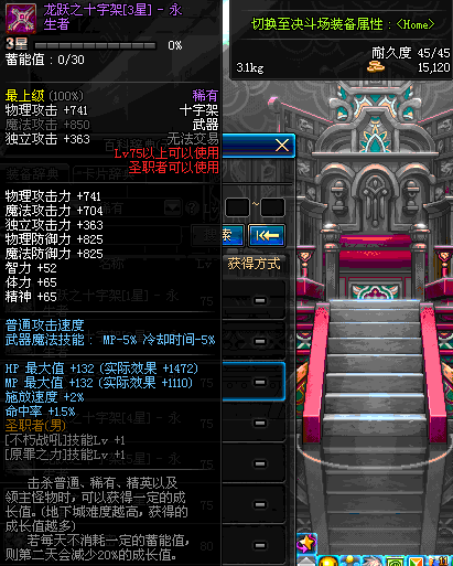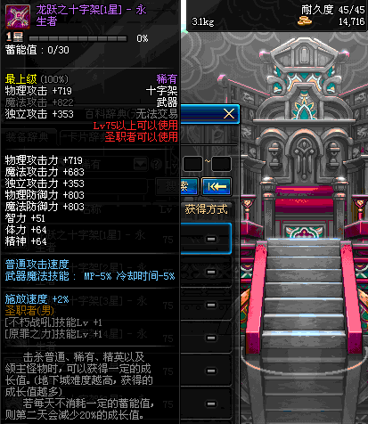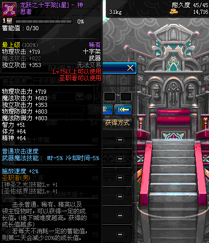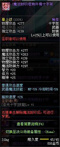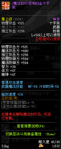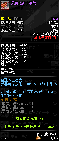 | 45 | 圣物 : 玄月精灵之十字架 | *Lv45~51普通地下城怪物掉落 |