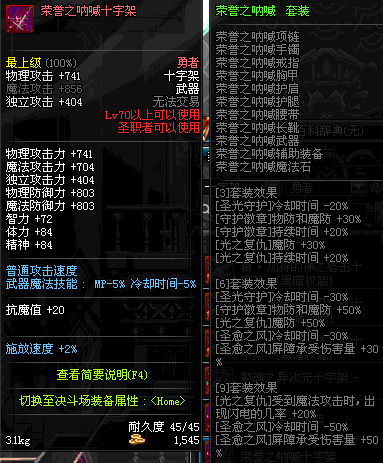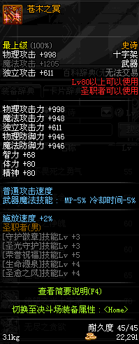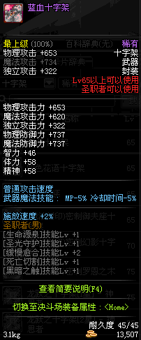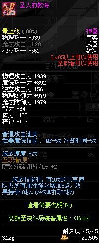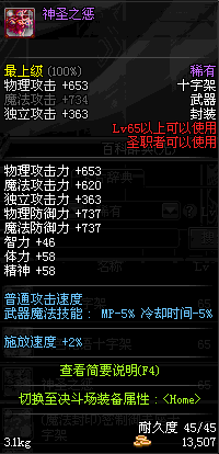 | 65 | 圣物 : 圣光精灵的预言十字架 | *Lv65~71普通地下城怪物掉落 |